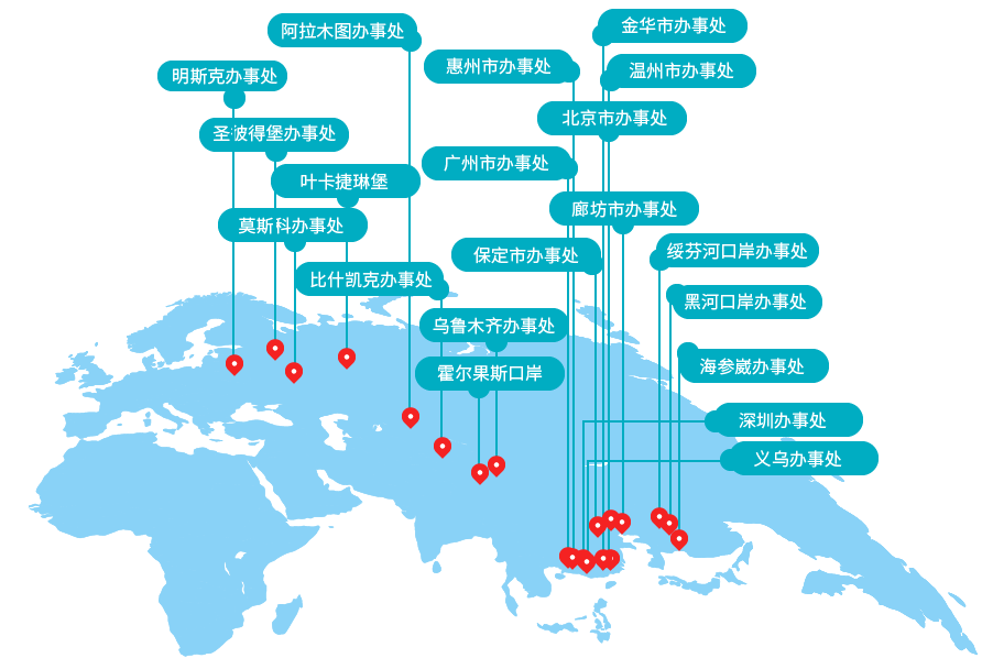 现公司设有机构的地区包括: